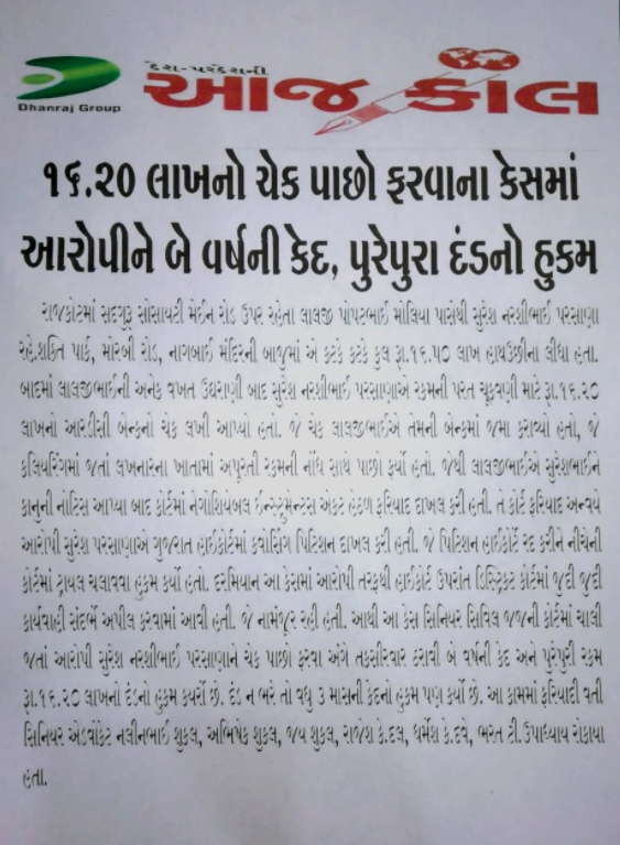 July 31, 2021 By shuklaadvocates Uncategorized No Comments Offender sent for 2 years of Imprisonment and ordered to pay full amount as a fine. Download