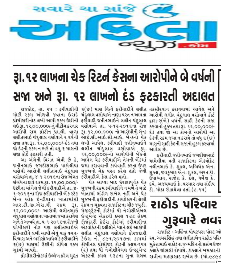 • Offender sent for 2 years of Imprisonment and ordered to pay full amount as a fine.